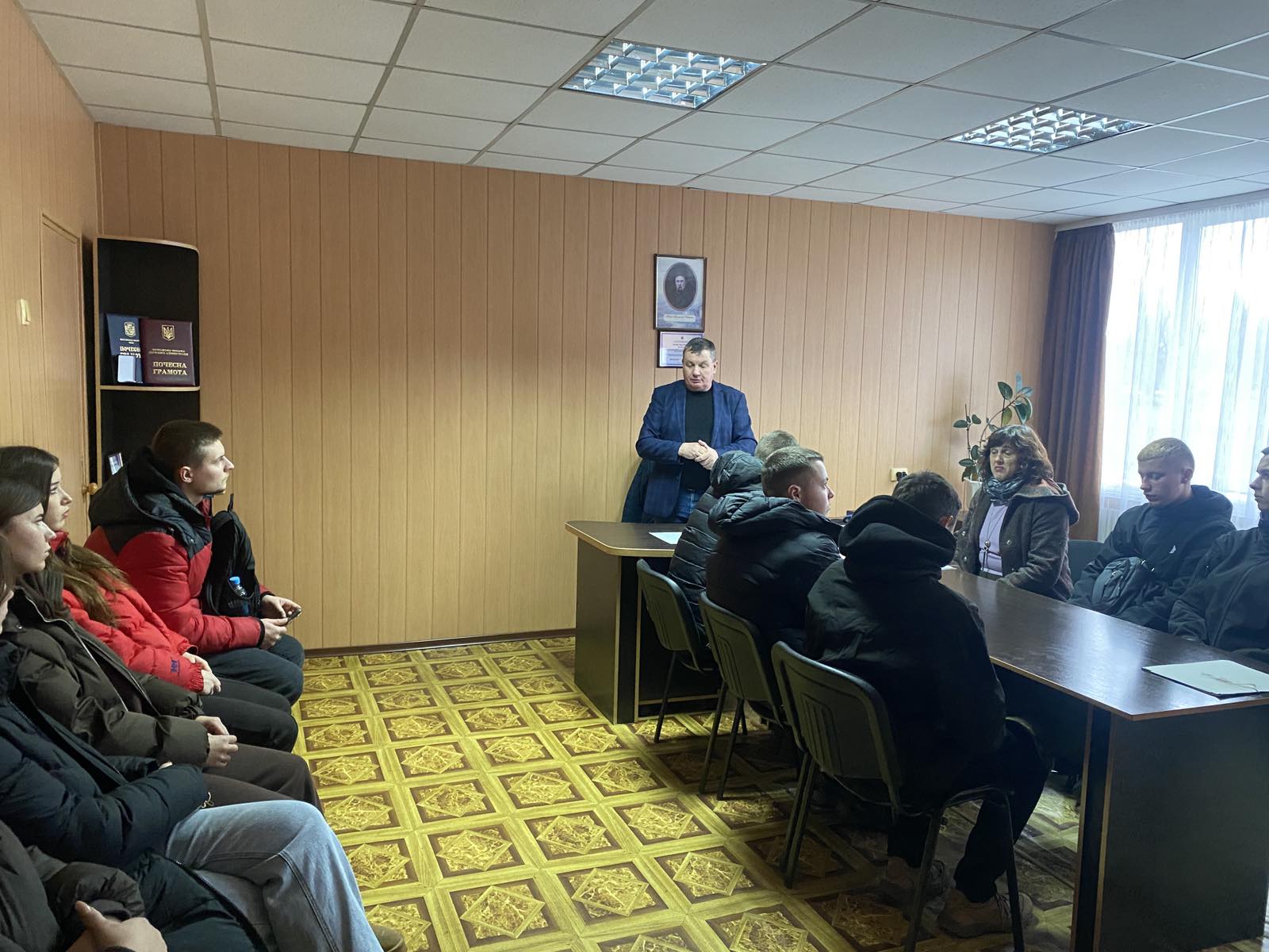Наші гості мали можливість поспілкуватися з в.о. директора училища Ігорем ІЩЕНКОМ, який ознайомив присутніх з системою професійної освіти, специфікою роботи із здобувачами освіти, котрі отримують робітничі професії та особливостями організації освітнього процесу в училищі, а також з можливістю отримати робітничу спеціальність.