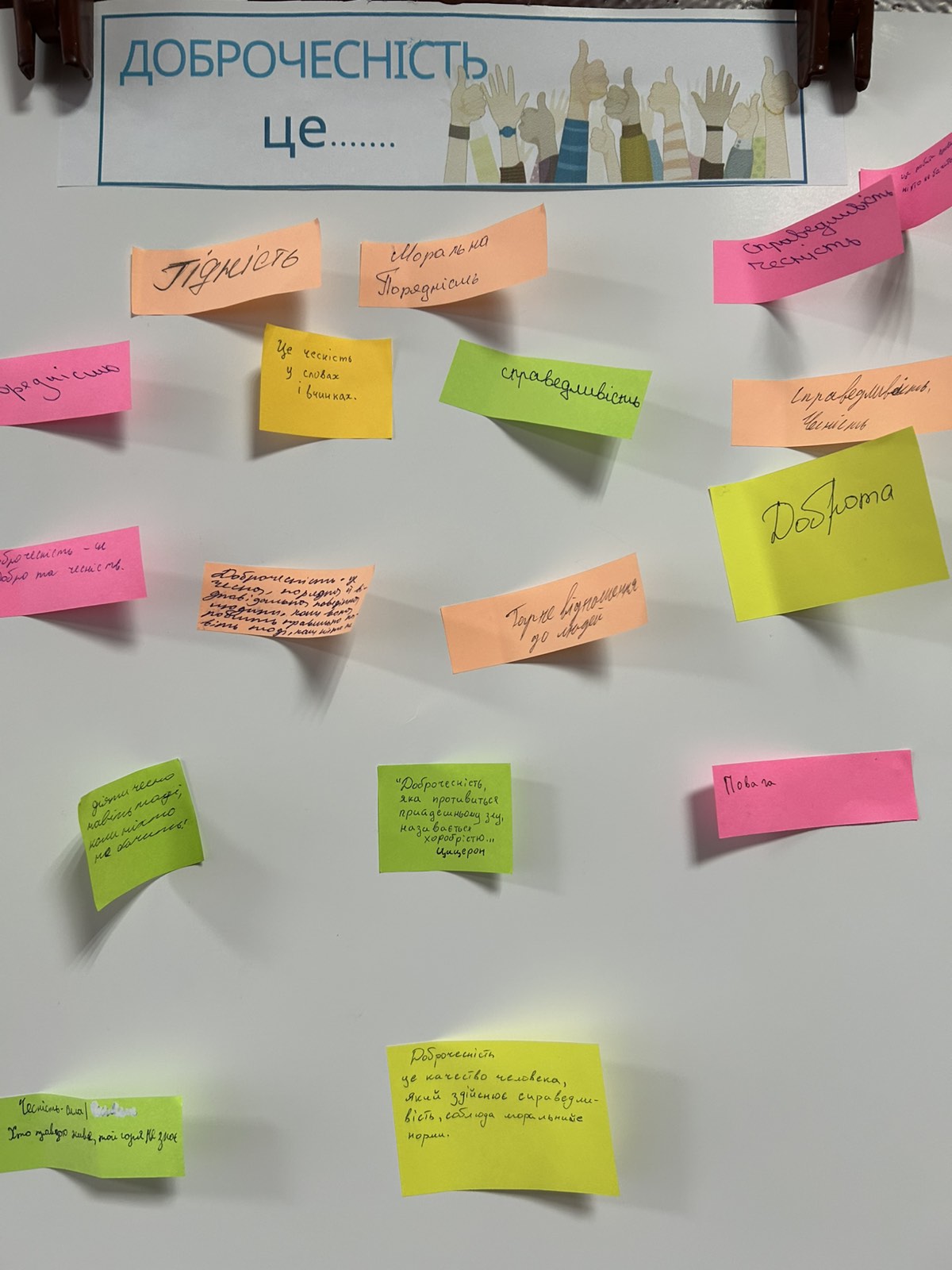 • ☁️ Інтерактивна вправа «Хмара думок»: учні ділилися асоціаціями з поняттям доброчесності